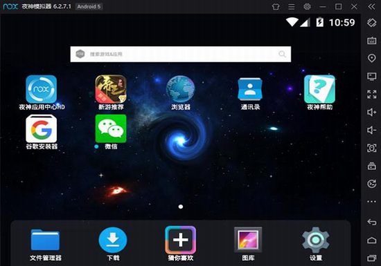1、无需安装,已制作为绿色版,知识兔双击bin文件夹下的 Nox.exe即可打开使用。