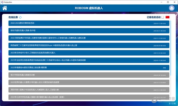 1、robosim分享比赛信息查看功能,进入软件就可以查看各种线上比赛内容;