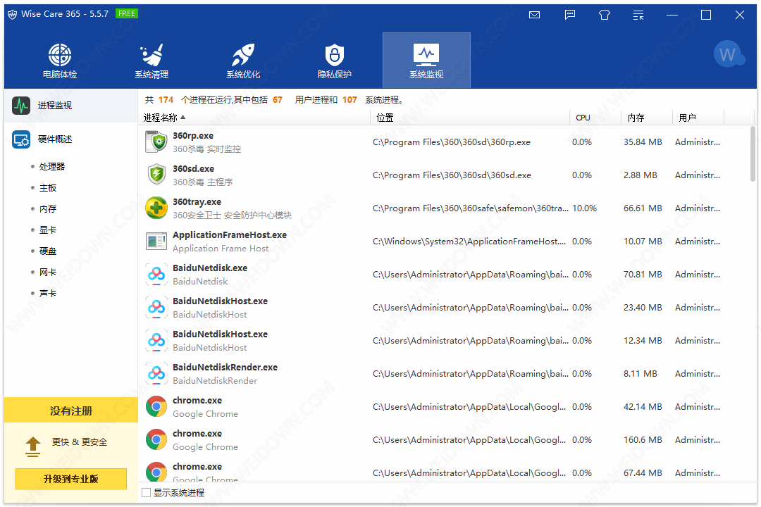 – 进程监视器为用户分享了系统运行的所有进程的清晰列表,用户可以关闭他们不需要的任何进程使电脑运行的更平稳。