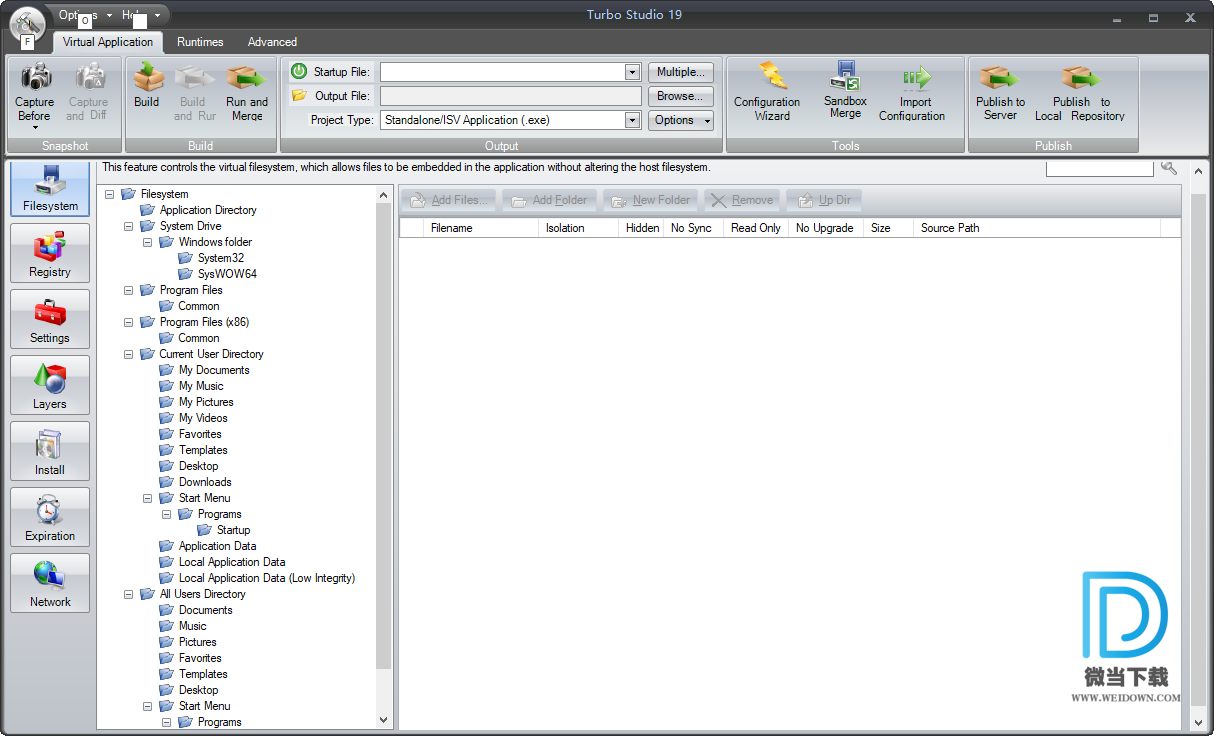 Turbo Studio 是一款一款非常优秀的虚拟封装程序,他能够转换Windows、.NET、Java、AIR、Flash、Shockwave或其它Windows兼容应用程序为独立的虚拟化应用。
