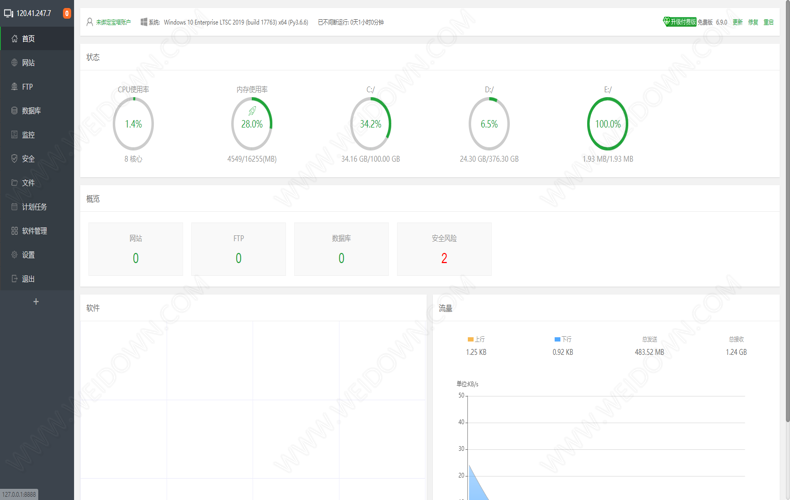 宝塔面板是一款使用方便、功能强大且终身免费的服务器管理软件,知识兔支持Linux与Windows系统。一键配置:LAMP/LNMP、网站、数据库、FTP、SSL,通过Web端轻松管理服务器。