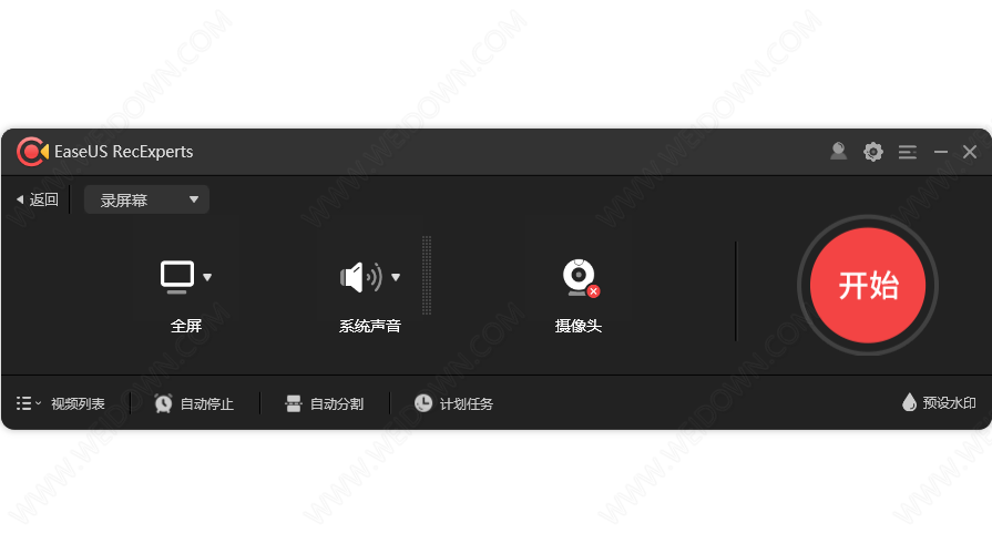 EaseUS RecExperts是全球软件开发商EaseUS推出的一款屏幕录像软件,主面板具有录屏幕、录声音、录游戏、录摄像头四大功能。